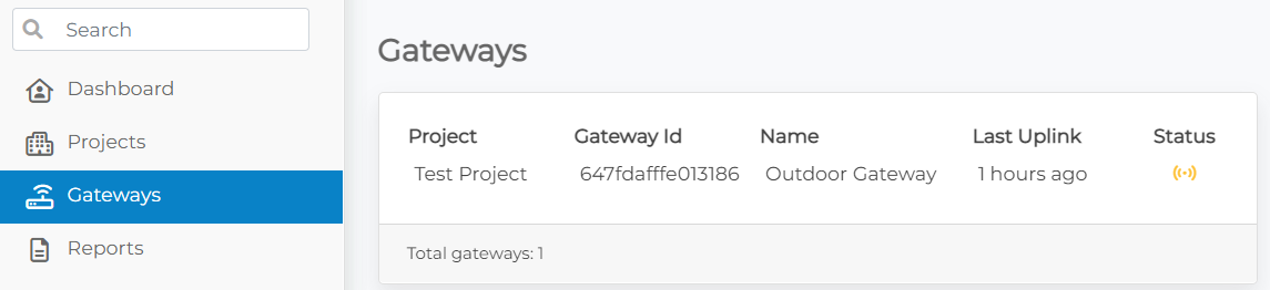 - The status of all gateways accessible to your account is displayed here and updated in real-time. The “Last Uplink” field will indicate when the Truety system last received data from your gateway(s)