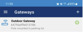 Green dot indicates that the Gateway is online and has communicated in past 5 minutes